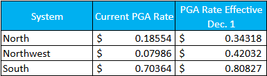 Natural gas prices have increased impacting the PGA